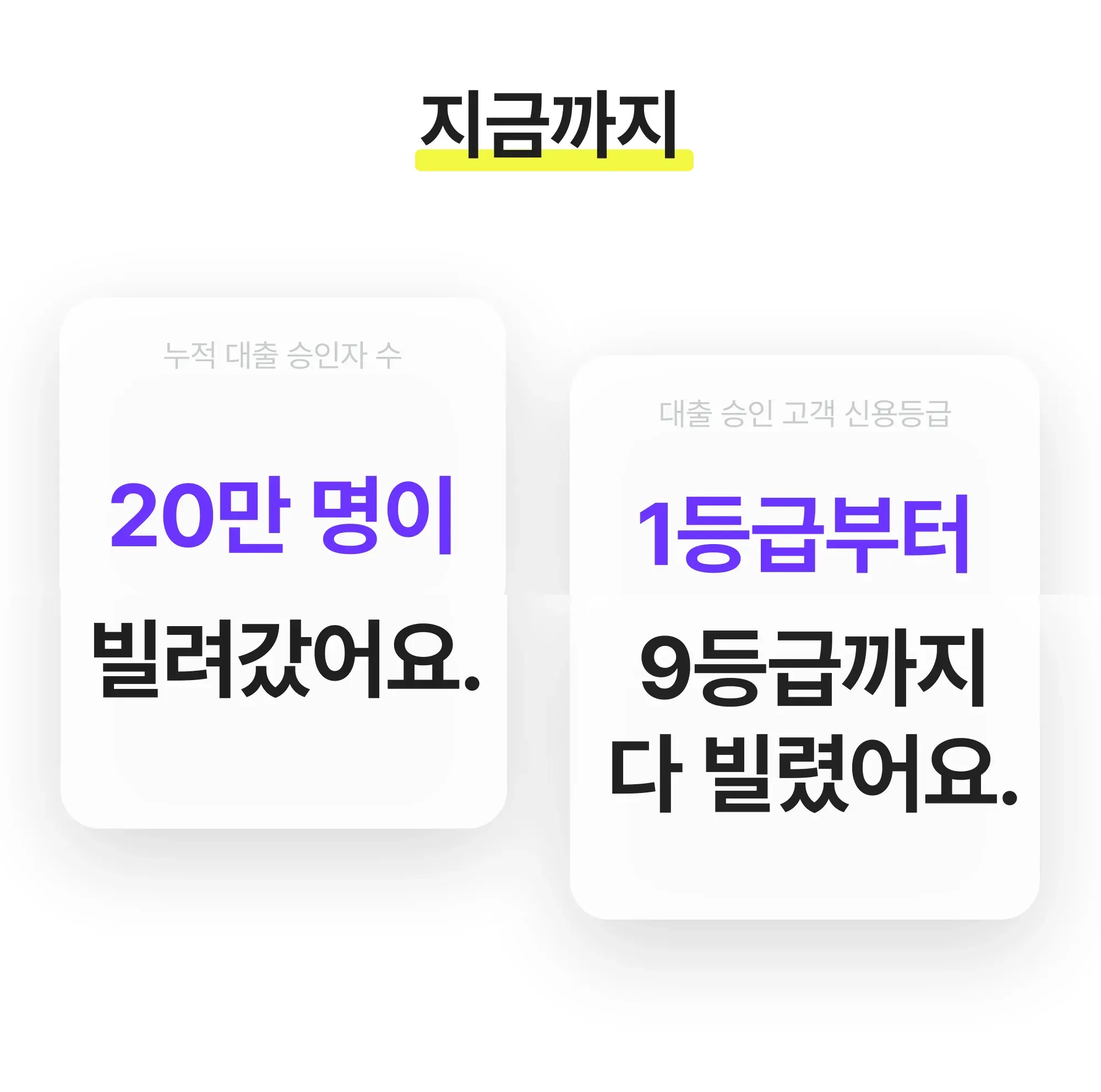 만 20세 이상 고객 대상으로 개인신용평점 등 신용도 및 당사 평가 기준에 따라 대출 가능 여부 및 이자율 산출