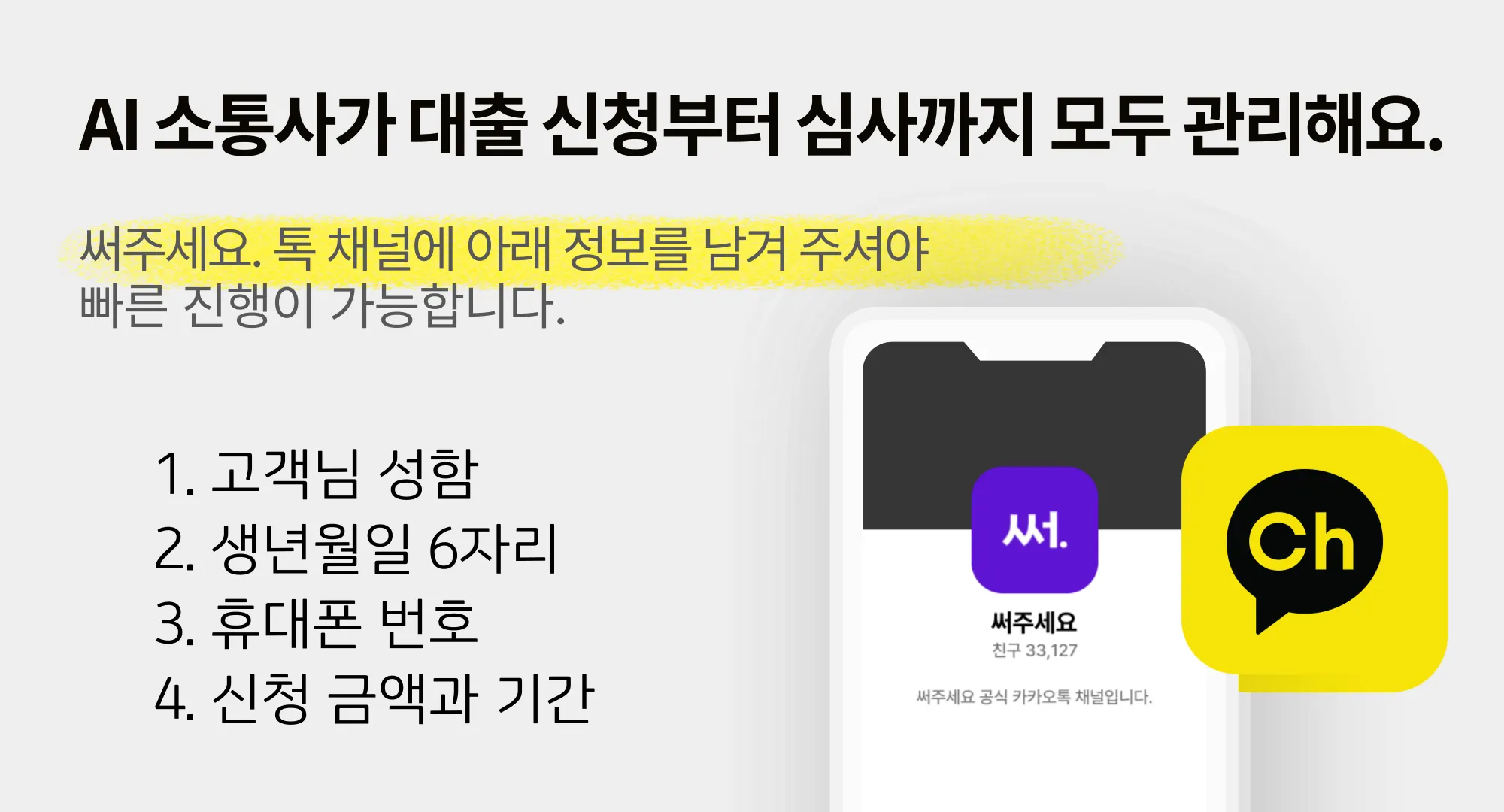 고객님의 소통거리를 통해 상환 능력과 의지를 여러 측면으로 파악해요.