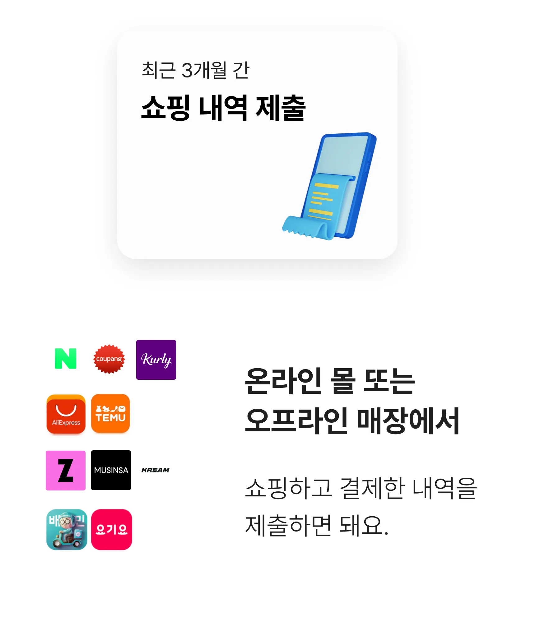 사전에 깜짝 이벤트로 [쇼핑 내역을 제출하고 돈 빌리기] 상품을 중간 중간 오픈런할 예정이니 기대해 주세요!